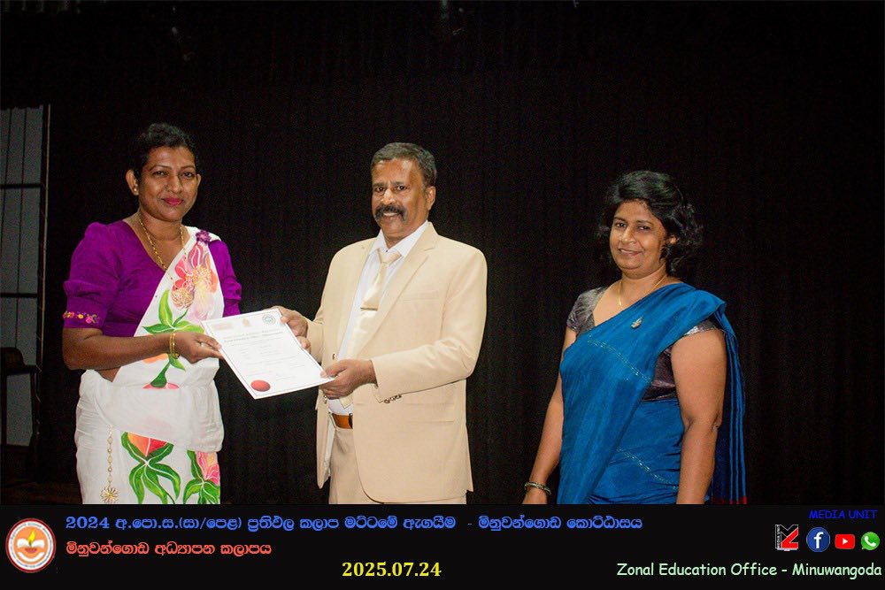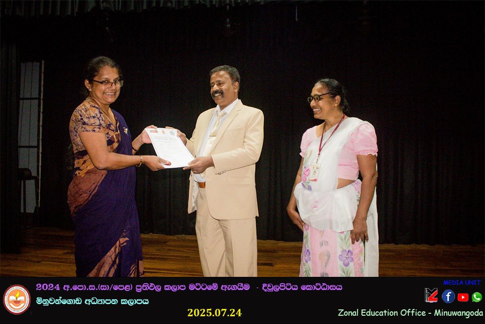 2024 අ.පො.ස.සාමාන්ය පෙළ විභාගයේ විශිෂ්ඨ ප්රතිඵල ලබා ගත් පාසල් වෙත විදුහල්පති රැස්වීමේදී ඇගයීම් සහතික කලාප අධ්යාපන අධ්යක්ෂතුමා විසින් 2025.07.24 දින ප්රදානය කරන ලදී…